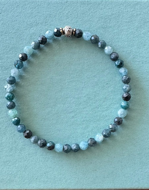 Natural Paraiba Blue Tourmaline and Thai Silver Stretch Bracelet